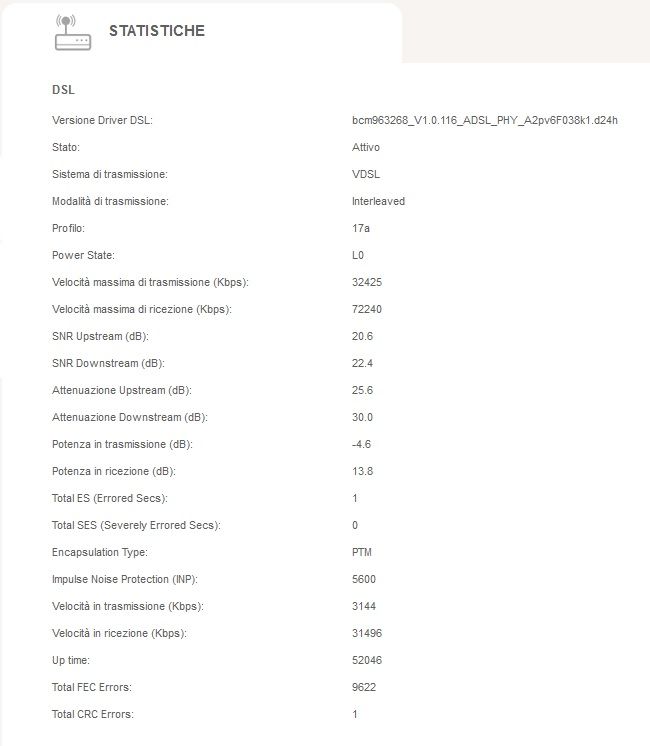 altrimenti chiami il 187 e dici che ti hanno passato un doppino i tecnici telecom e che avevi dopo il lavoro un attenuazione bassissima di circa 4 5 db in down e poi oggi tutt ad un tratto i valori sono saliti in quella maniera in oltre avevi velocità di ricezione nettamente piu alte oltre i 120 mbit... se ti dicono che va bene cosi perchè i 30 mega li raggiungi digli che a volte riscontri rallentamenti perchè vedo che hai degli errori crc che non dovrebbero esserci. in oltre un attenuazione di 30 non è credibile dato che hai l armadio fuori dal portone, al massimo sono 100 m di cavo... se ti dicono che hai una velocità teoria accettabile tu digli che dato che vorrai attivare profili sempre piu alti in futuro quando disponibili ti faceva comodo avere la linea piu prestante come era appena finito il lavoro Ultima modifica di Iuber : 15-03-2014 alle 10:08. |