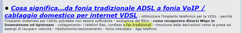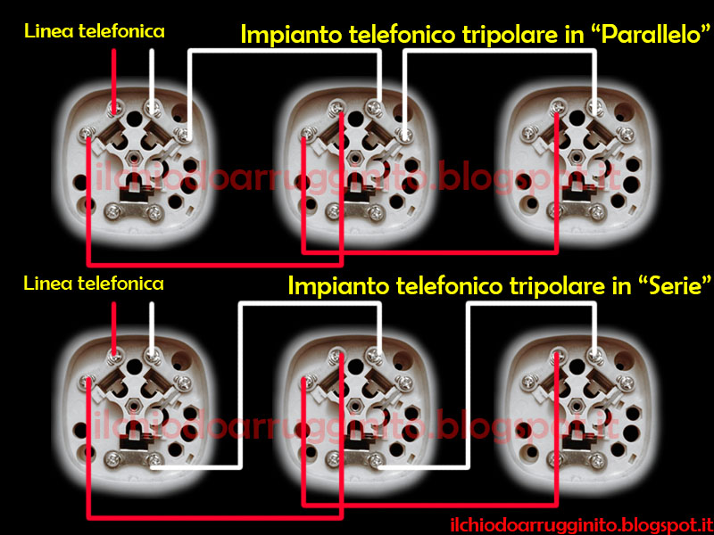 Anzi è pure un requisito nel caso di fonia RTG (tanto più che in adsl i filtri adsl tripolare lo facevano loro): Metto una foto di un altro sito (sempre che sia ammesso dal regolamento) per chiarire meglio ![]() Comunque sia il collegamento dentro la presa si vede chiaramente che le prese sono in sequenza/serie tra loro e questo va bene. Quello che è un problema (e lo era già anche per l'adsl) è una configurazione a stella o di altro tipo dove NON esista una sequenza precisa tra le prese ma esistano più prese in parallelo tra loro. E questa la si può scoprire / supporre se c'è una scatola di derivazione comune per tutte o per alcune delle prese o se aprendo 2 o 3 prese (non basta una sola) si trova sempre che c'è un unico doppino in quella presa. In un impianto con prese in serie (anche configurato in modalità elettrica parallela) c'è sempre un doppino che arriva ed un doppino che riparte (almeno 4 fili sulla presa). Tutto questo tranne che in una presa, ossia nell'ultima dell'impianto (per questo si chiede si aprirne almeno 2 o 3). Se ci sono 2 o più prese con solo 2 fili attaccati alla presa è un forte indizio di impianto a stella o di altro tipo con rami in parallelo tra loro. PS Non è che su un impianto a stella la FTTC non funziona. Per funzionare funziona anche lì (come l'adsl), però di certo sarà abbastanza danneggiata e perderà prestazioni e sarà più complicato (ma sempre possibile) risolvere il problema e riportare le prestazioni al max possibile (soprattutto se si vuole mantenere l'uso di tutte le prese per i telefoni). Ultima modifica di Yrbaf : 28-12-2019 alle 00:39. |