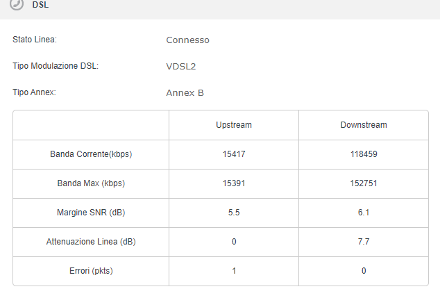 il chipset adesso è broadcom 12.0.110 (192.110) con vectoring spento. qualcuno sa qualcosa di questo chipset? perchè in internet non ho trovato nulla... La linea è in 17a, è in derivata prima, a circa 400m dal cabinet, con impianto telefonico interno già con un'unica presa vedete le immagini seguenti ![]() ![]()