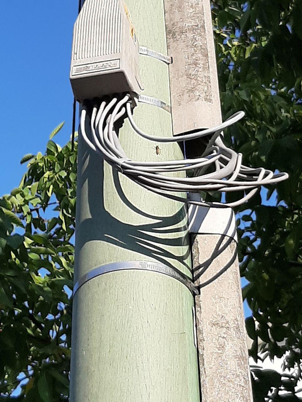 Dalle foto mi. Sembrano tutta roba vecchia appese ai pali di legno che nella mia via non trovo. I miei cavi viaggiano sotto terra. Non so cosa cercare