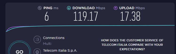 molto gentile, disponibile. Nulla da dire. merito dei ticket probabilmente. nel frattempo mi ha impostato non so cosa e di vedere come andava. Cosa gli dico lunedi nello specifico? sistemami il profilo? telefonata di lunedi a parte, come sta sta linea ora? vado 10 Mb in piu col fritz, UL pero non raggiunge i 20 dello scolapasta.. G.imp a quanto deve stare? |