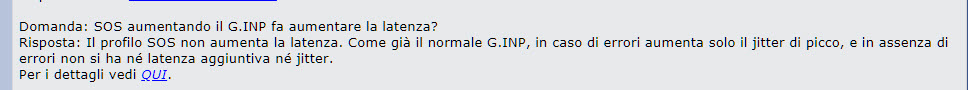 E quindi hai il meglio dei mondi possibili, senza penalizzazione di banda (dovuta al 12 dB SNRm) e senza penalizzazione di latenza (perchè se la linea non è disturbata SOS non introduce latenza).