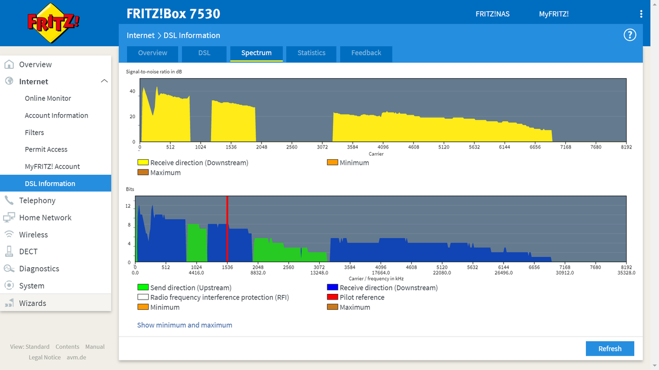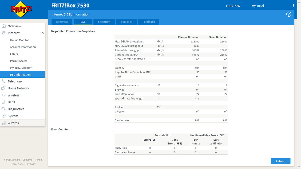 Anzi, uno si.. il Fritz!Box! Solo che la distanza che i Fritz!Box indicano si basa sulla attenuazione rilevata e quella è. Piuttosto, vero come è vero che la distanza tra l'armadio al quale risulta collegato e l'abitazione sia quella, ha sicurezza al 1000% del percorso del cavo che collega l'armadio alla abitazione... parte aerea, parte sotterranea, etc. Ha verificato che sul ripartitore al quale sa di essere collegato l'armadio indicato sia proprio quello, e che il ripartitore medesimo non faccia parte di linea derivata? Insomma... se il modem ignora bellamente le indicazione del database di Planetel (o quale esso sia, uno vale l'altro e tutti insieme hanno la stessa probità che il catasto ha per il rilevamento delle unità immobiliari) una ragione esiste.. l'attenuazione rilevala non è quella di un collegamento fisico "normale" di circa 100 metri lineari. Queste che seguono sono le risultanze della appena eseguita verifica Planetel al mio indirizzo: FTTCAB da Cabinet #1 WHS-T Fibra attiva Dist. stimata utente dal cabinet: 715m Velocità stimata Download:30 Mb/s Velocità stimata Upload:5 Mb/s Questi i miei valori attuali.. ↓Direzione di ricezione: 67,98 Mbit/s ↑Direzione di invio: 21,60 Mbit/s 518 m Modell: FRITZ!Box 7590 DSL-Version: 1.180.131.60 DSL internet: attivo Direzione di ricezione Direzione di invio Capacità della linea kbit/s 68337 37283 Velocità di trasferimento attuale kbit/s 67986 21600 Veloc. di trasf. effettiva min. kbit/s 66862 21591