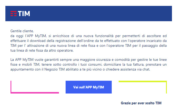 App MyTim: novità - ascolto e scaricamento della registrazione dell'ordine