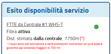 Esito disponibilità servizio FTTE da Centrale #1 WHS-T Fibra attiva Dist. stimata dalla centrale: 350m Ora fra l'altro è un continuo saltare da 30 Mb a 15 Mb e viceversa, non ci capisco più niente ![]() La centrale è vicina e risulta tale anche dal controllo via web, ma il tecnico mi ha detto che non devo considerare la linea d'aria ma il cablaggio abbastanza contorto fra le varie vie che conducono il segnale fino a casa mia. Le disconnessioni frequenti avvenivano fino all'altra settimana, poi evidentemente hanno posto rimedio con l'opzione di cui parlavi. |