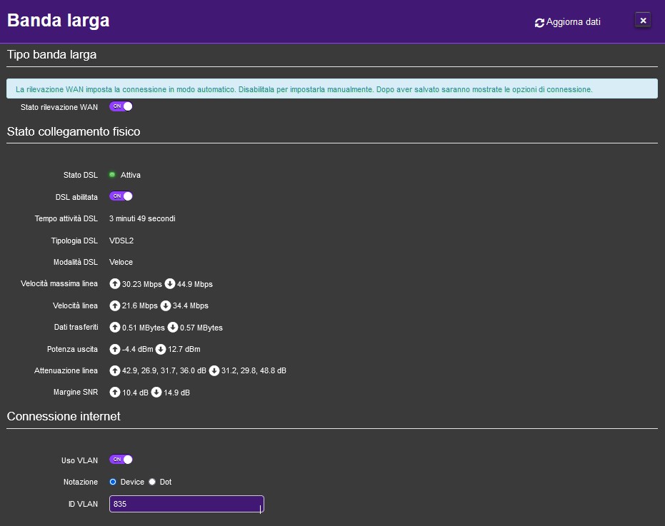 premesso che avevo fino 2 giorni fa avevo questa situazione: ![]() sono a 100 metri dall'armadio linea volante e praticamente prendevo pieno. anzi aggiungo questi che sono più recenti di quelli sopra: ![]() Poi a mezzanotte di qualche sera fa mentre stavo navigando si è disconnesso e alla riconnessione avevo 140Mb al posto dei 200. Ho aperto segnalazione in quanto ho avuto diverse disconnessioni e ping alzato, fintanto che stamattina altra disconnessione ma stavolta sono con questi valori: ![]() Errori CRC e valori molto sballati. Adesso ho inoltrato un sollecito... ma che ne pensate? Ultima modifica di Ivy_mike : 16-09-2021 alle 18:40. |