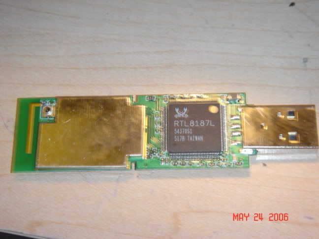 Questa è una wg111...notate il connettorino in alto a sx (è circa 3x3 mm). Questo connettorino è studiato per fare test (evidentemente prima di montare il "case" la testano) è supporta si o no un centinaio si connessioni, poi si rovina (connessioni in senso fisico di attacca-stacca). Quindi se siete fortunati potete comprare un maschio di quel tipo (difficili da trovare) attaccarci del coassiale, portare il coassiale fuori dal case della chiavica usb e attaccarci qualsiasi antenna vogliate (non so fino a che db, ma 9 credo di si)