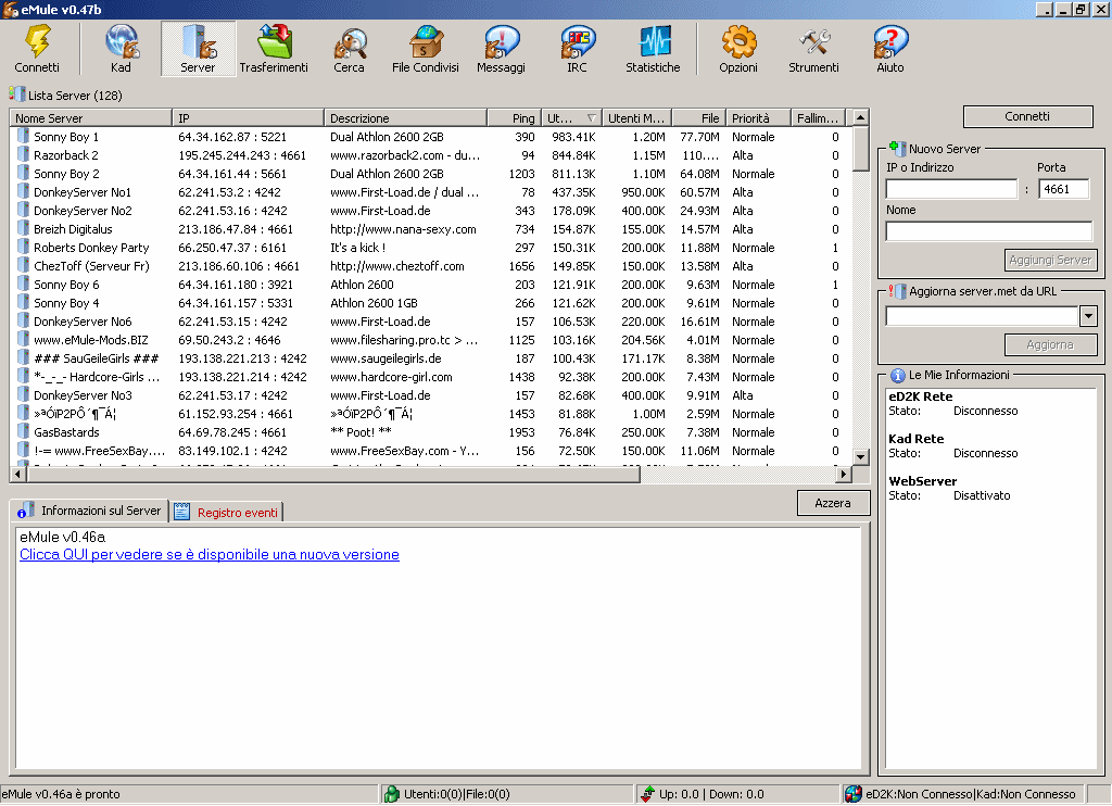 gli abbiamo postato tre volte il link alla guida poi se vi dobbiamo insegnare a leggere l'italiano è un altro discorso ![]() cmq quel link lo devi mettere proprio qua cosi finisce sto teatrino http://www.emule.it/guida_emule/imag...er_freccia.gif nello spazio a centro pagina sulla destra dove leggi "aggiorna server.met da url" e clicchi aggiorna