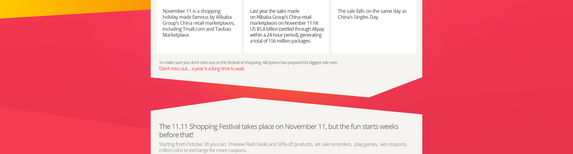Leggevo che lo scorso anno, appunto l'11.11 hanno registrato vendite per 5.8 BILIONI di dollari e per corrispondenti 156 milioni di pacchetti ! http://gtms03.alicdn.com/tps/i3/TB10...X-1920-517.jpg vedete un pò voi ! |