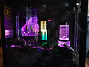 mi spiace per l'assenza dei led sulle nuove fan, ma volendo una build quasi completamente nera come componenti, avere delle fan con le pale bianche anche no. i 3 canali dell'octo che gestiscono le 9 furius li ho limitati al 80% di potenza, quindi le fan non posso salire oltre i 2300/2400 rpm, appena sopra le evo 120er. ho fatto un bench al volo. con temp liquido che partiva dai 34/35 e la 2080ti con 350/360w da dissipare, ho visto 47 gradi sulla gpu, il liquido è salito fino a 38 gradi. con le alpenfohn e stesse condizioni, gpu a 56-57 gradi e liquido oltre i 45. segno che i rad non smaltivano calore, soprattutto i due ek da 38mm. per il momento tengo tutte le fan in estrazione, vediamo se nel caso invertire le bottom da espulsione ad immissione. visto che c'ero ho apportato anche alcune modifiche. la prima ho cambiato la posizione del rubinetto (in realtà ho cambiato anche lui con una valvola ek torque). e poi ho sostituito il flussimetro high flow v1 con un MPS400. in modo da avere una lettura più corretta del flusso, dato che il MPS400 non è influenzato dal suo posizionamento, mentre l'high flow si. inoltre ho guadagnato un ulteriore sensore di temp per il liquido. per il momento considerando che non è perfettamente calibrato ho 130 l/h con la pompa al 100% (il vecchio segnava all'ultimo 70 l/h). in ogni caso il wb dei vrm della maximus xii formula non aiuta di certo il flusso. tra l'altro ho pure risolto una leggere perdita di aria (lenta ma si notava), quando mettevo il loop sotto pressione per il test leak, con il liquido non c'erano perdite. l'aria è più bastarda. il prima: ![]() il dopo: ![]() ![]() ![]() ![]() ![]() ![]()