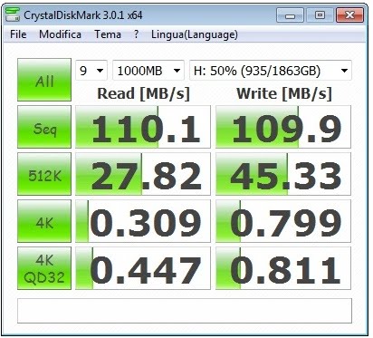 Mi capita però che è lento nell'accesso ai dati e si sente anche un rumorino tipo partenza di... un disco: non so come descriverlo, cmq mai fatto col il Samsung da 1 TB. Il firmware dei 2 HD204UI è 1AQ10001. Ho fatto qualche test su questi 2 hard disk. ![]() ![]() ![]() ![]() Ed ho provato ad "incollarci" un file di quasi 9 GB: per entrambi la velocità mesia si è attestata attorno a 81 MB/sec. |