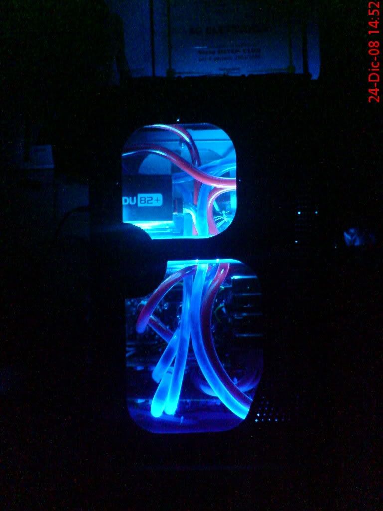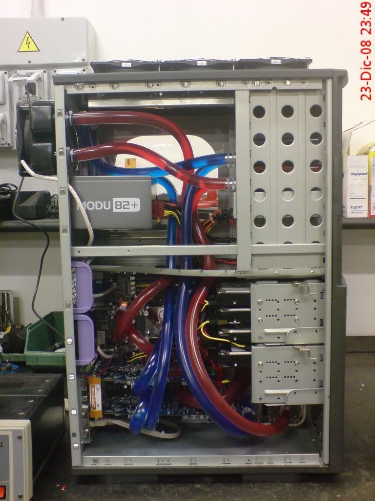 Case: TT Xaser VI lcs ° Cpu: Intel Core i7 920 ° CpuCooler: Noctua NH-U12P SE ° Mobo: Asus Rampage II Extreme ° Ram: Corsair Dominator XMS3 6Gb 3x2GB DDR3 1600Mhz ° Vga: Gainward ATI HD4870x2 Rampage700 GS GLH ° Hdd: 2x WD 150 GB V.Raptor Raid0 + 2x Samsung 1TB 32MB ° Psu: Corsair 1000HXEU ° Monitor Tv: Lcd Sharp Lc 42x20E Full HD ° |
