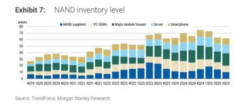 - TeamGroup lancia il primo SSD con controller E28: lo Z54E. Le performance sono da SN8100, cioè sul livello dell'SSD più veloce del mercato: 14,9 GB/s in lettura sequenziale e 14,0 GB/s in scrittura sequenziale. Ancora nessuna informazione sulle prestazioni casuali (e le NAND flash sembrano essere delle YMTC/Micron 232L).¹ - Micron, a seguito di un mancato recupero del market share che era dell'1%, esce dal business delle NAND flash per i server cinesi. Il mancato recupero è dovuto dal fatto che nel 2023 la Cina ha bannato qualsiasi chip di Micron dai computer nazionali. Gli unici clienti saranno Lenovo che ha data center al di fuori della Cina e clienti che rientrano nel mercato automobilistico e mobile.² - Samsung aumenta il tasso di utilizzo delle NAND flash V8 TLC (236L) nella centrale di Pyeongtaek del 10%, passando dal 60-70% all'80%. La produzione stimata è di circa 100.000 wafer per month (wpm).³ Per la situazione prezzi parlo in separate sede. Se da una parte abbiamo il CEO di Winbond (un'azienda produttrice di memorie flash e DRAM) che non crede che questo ciclo sia un superciclo e che questo ribasso dei prezzi possa durare 2-3 anni⁴, la banca d'affari Morgan Stanley ha fatto uscire un report dicendo che attualmente ci troviamo allo stadio iniziale-medio del ciclo e che i produttori di memorie stanno quotando aumenti dei prezzi fino al 25% per il prossimo trimestre (4Q25, non 1Q26, e si parla sia di DRAM che di NAND flash). Questo qui sotto è il livello di inventario delle NAND flash: ![]() 60 settimane totali nel 3Q25. Morgan Stanley dice che "ci vorranno ancora 4-6 trimestri prima che la nuova capacità riesca a soddisfare la domanda", ciò vuol dire massimo giugno 2027. Per quanto concerne i prezzi, la banca di affari prevede che ci sia ancora tanto gap perché i prezzi di questo ciclo raggiungano un massimo storico però prevede che il picco possa arrivare a $0,13 per GB, lo stesso avuto nel secondo trimestre del 2022. $0,13 per GB vuol dire $130/111 € per 1TB di NAND flash. Queste qui sotto sono le previsioni dell'aumento dei prezzi fino al 2026. La situazione è diventata chiaramente peggiore: sembra che la crisi si possa prolungare fino alla fine del 2026 se non anche oltre. ![]() Per ultimo, Morgan Stanley dice che l'aumento dei prezzi delle azioni delle aziende non è dovuto soltanto dall'IA ma anche dalle revisioni al rialzo delle previsioni sugli utili. Per esempio il rialzo del prezzo delle azioni di SK hynix del 140% è stato sostenuto dalla revisione all'aumento del 62% delle previsioni sugli utili, mentre il prezzo delle azioni di Samsung è aumentato "soltanto" del 62% e la revisione al rialzo della previsione sugli utili è stata del 14%⁵. ¹: https://www.tomshardware.com/pc-comp...cie-5-0-drives. ²: https://www.reuters.com/business/aut...ay-2025-10-17/. ³: https://x.com/Jukanlosreve/status/1980139132191187188. ⁴: https://www.digitimes.com/news/a2025...mand-2025.html. ⁵: https://x.com/Jukanlosreve/status/1980511112010559948 |