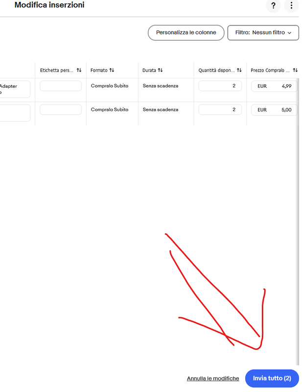 allora ho selezionato due inserzioni e ho modificato la quantità a entrambe e poi cliccato sul bottone in basso: ![]() se invece si può fare altro, dimmi, che testo.