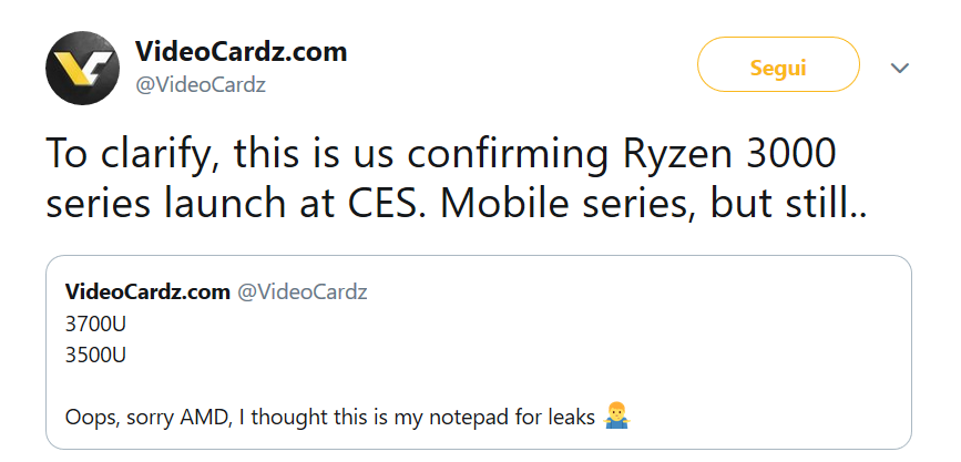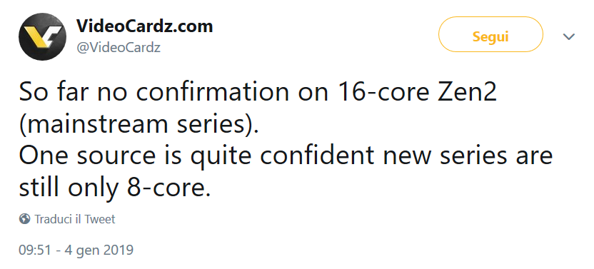 Mentre Ryddyck ha sempre dato "indiscrezioni" che si sono verificate veritiere...Ma ciò significa che il top di gamma sarà un 8 core a 4,6Ghz? Ero convinto che avrebbero fatto un 12 core (16 mi sembravano troppi per AM4).... Comunque bisogna aspettare il CES, ormai manca poco... |