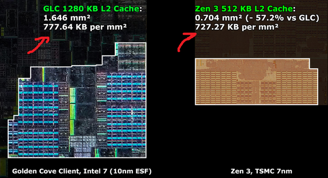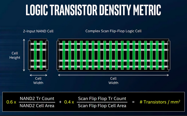 Ogni nanometria delle case, ha diverse metriche relative al gate, es: gate pitch x minimum metal pitch, oppure gate pitch x altezza cella logica (cell heaight). Ci sono formule ben accurate, che però hanno dimostrato che i 5nm, venivano dati per 2x i 7nm, invece raggiungono appena i 137mt xmm2. Una delle più accurate è questa. ![]() Il nodo di intel 5nm è attualmente a 3 fin per 122mt x mm2, per aumentare questo valore hanno dovuto lavorare internamente al gate, riducendo l'altezza delle celle. Tuttavia questi sono parametri che interessano in parte, attualmente a livello di circuito e logica, i dati sono ben più bassi. Intel 14nm, dichiarava una densità per gate di 37mt x mm2, mentre a circuito era appena 20mt xmm2, sotto sia a samsung che TSMC con 25mt medi. Intel 7nm, non ha varato la specifica effettiva a circuito, ma a livello di sram pare simile, anzi poco sopra TSMC 7NM (6%) ![]() Chiaramente Intel per arrivare a quei clock, ha imbottito le logiche con zone dense di transistor su vari parametri, ma ha attualmente un vantaggio sul decode a 6 micro ops, roba che verrà rivista su zen5. Intel però non ha ancora EUV, mentre zen 4 si. Ovviamente la densità teorica o effettiva ha un rilievo marginale se poi a circuito si è simili. Attualmente è difficile stabilire, l'efficienza di un PP con nodi diversi, es: samsung 5nm è mediamente un 7nm TSMC con densità leggermente minore ai 5nm. Intel 10nm prima rev, con le GPU, aveva appena 40mt x mm2, meno di tsmc, e boostava a 1600 circa, ora con TSMC 6nm arriva a 2,5. ![]()