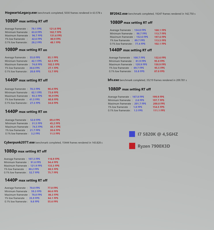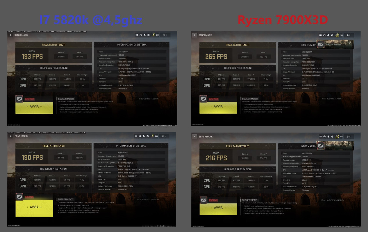 Nei giochi privi di benchmark ho cercato di simulare il più possibile la stessa scena,in battlefield 5 e 2042 ho fatto lo stesso percorso nelle medesime mappe,stessa cosa ho fatto con hogwarts e cyberpunk,purtroppo su cyberpunk non mi ricordavo ci fosse il benchmark ![]() Il primo fine settimana utile monterò un video da mettere su youtube con le varie scene dei test,buona visione... Call of duty modern warfare 2 ![]() Red dead redemption 2 ![]() ![]() ![]()