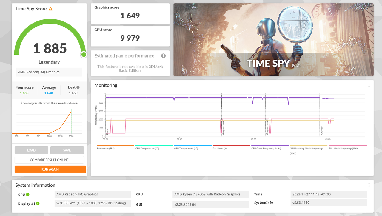 Prendendo di riferimento il timespy, se fosse il graphics score sarebbe sui 3300 punti(il 5700g fa circa 1500 punti nel graphics score) siamo ai livelli della gtx 1650(che ancora ti vendono a 160 euro). Non è male per niente, qui si che si inizierebbe a giocar decentemente senza igpu(magari in full hd e con un aiutino da parte dell'fsr). ![]()