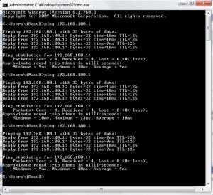 Pinging 192.168.100.1 with 32 bytes of data: Reply from 192.168.100.1: bytes=32 time=31ms TTL=126 Reply from 192.168.100.1: bytes=32 time=31ms TTL=126 Reply from 192.168.100.1: bytes=32 time=33ms TTL=126 Reply from 192.168.100.1: bytes=32 time=29ms TTL=126 Ping statistics for 192.168.100.1: Packets: Sent = 4, Received = 4, Lost = 0 (0% loss), Approximate round trip times in milli-seconds: Minimum = 29ms, Maximum = 33ms, Average = 31ms C:\Users\DooM>ping 192.168.100.1 Pinging 192.168.100.1 with 32 bytes of data: Reply from 192.168.100.1: bytes=32 time=31ms TTL=126 Reply from 192.168.100.1: bytes=32 time=29ms TTL=126 Reply from 192.168.100.1: bytes=32 time=31ms TTL=126 Reply from 192.168.100.1: bytes=32 time=34ms TTL=126 Ping statistics for 192.168.100.1: Packets: Sent = 4, Received = 4, Lost = 0 (0% loss), Approximate round trip times in milli-seconds: Minimum = 29ms, Maximum = 34ms, Average = 31ms Secondo te come è normale?