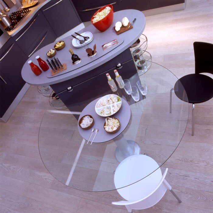 quello che vedi in cristallo è il tavolo dove si mangia, quello vicino è l'isola snack... la cucina lho postata qualche pagina fa!