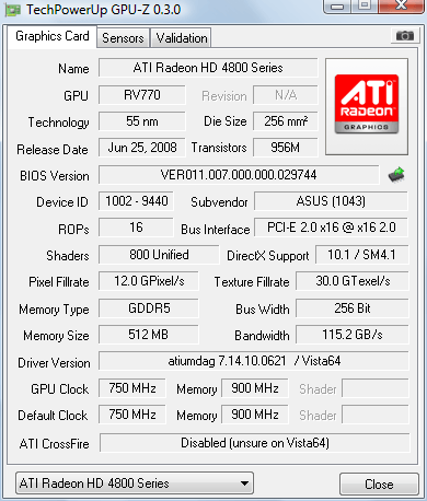 Ciao a tutti, anch'io ho dei problemi (BsoD con relativo errore al file atikmdag.sys mentre gioco con titoli come Crysis e, ovviamente, GTA IV. Non ho avuto modo di testare altri giochi, ma crysis provoca il Bsod solo se lo avvio con DX10, con DX9 e impostazioni massime và) con questa gpu e "spulciando" vari siti sembra che la soluzione sia flashare il bios. Premetto che non me ne intendo, non saprei nemmeno dove trovare l'ultimo bios disponibile per la mia scheda, le cui info sono nell'immagine sottostante: