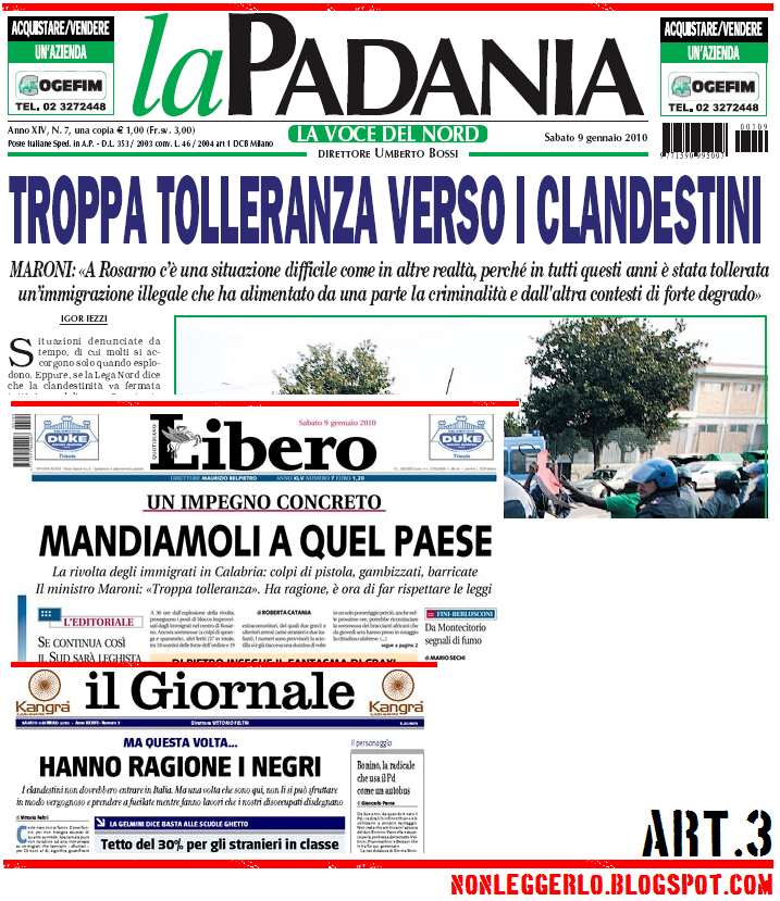 Attenzione attenzione: anche il giornale dell'amore pone l'accento sul fatto che "i negri" fanno lavori che i nostri disoccupati disdegnano. Avvisate gli azzuri che devono cambiare posizione a riguardo per adeguarsi alla linea.