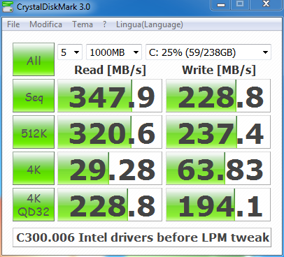 Firmware 007: Ho aggiornato nella speranza di risolvere il malefico problema del freeze di 20-30 secondi con errore Iastore tipo 9 sul registro eventi sistema.... problema che non era sparito con il "tweak LPM" postato sul forum Crucial (anzi, l'aggiunta delle chiavi al registro aveva apparentemente solo fatto crollare i risultati con CDM)... ne installando gli Intel RST driver beta ultima versione... problema che purtroppo è risultato presente anche con il firmware 007... ora ho provato a riapplicare il tweak LPM ma sono poco fiducioso...