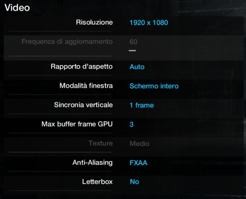 cmq sono due menu: uno è Video, l'altro è Opzioni grafiche. Nel primo ci sta la risoluzione, il vsync e l'AA, nel secondo i dettagli, textures, ombre ecc.