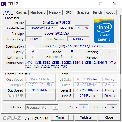 Cominciamo a dire che il 6900k gira a default non a 3.20 GHz ma bensi a 3.50 GHz , con tutti i core al 100% a meno che non si sorprassi la temperatura di 82-83° oltre la quale il proccio scende a 3.2 Full 100% ![]() Fino a 4 core frequenza turbo a 3.70 GHz ![]() In oc , è gestibile ad aria fino ai 4.00 GHz , oltre serve il liquido , quello che avevo a 4.20 GHz stava con un vcore di 1.25v (non certo con l'azoto, dai li l'hai sparata un pò grossa ![]() Tornando al discorso 6900k , perchè ho voluto puntualizzare che a def. viaggia a 3.50GHz? Semplice perchè per ottenere i risultati della tabella qui sotto , il 6900k doveva viaggiare (confrontati con i miei test a 3.70 GHz) Questo è uno dei test dove si nota una differenza in MT sostanziale da haswell , per ottenere lo stesso risultato del 6900k a 3.70 GHz il 5960x ha bisogno di 4.30 GHz (e non ho ancora capito perchè) Purtroppo non sapendo la frequenza di Zen , è difficile fare una valutazione diretta , ma se come da rumors Zen girava con tutti i thread a 3.20 , la differenza con il 6900k e davvero limitata,abbassando la frequenza a 3.20 GHz il 6900k fà 1407 punti , mentre a 3.00 GHz fà 1329 Quindi se le frequenze sono quelle ,dovremmo ritrovarci un proccio con performance simili a metà prezzo , che sarebbe davvero un best buy , e credo che se AMD continua la produzione su GF non vedo perchè dovremmo continuare a dire che se non arriva a 5.00GHz il silicio non è buono , solo a me sembra ottimo ,IPC simile a haswell/broadwell , TDP di soli 95W , prezzo davvero competitivo , non so cosa vogliate di più.... Inoltre continuate a paragonare il 7700k a Zen x8 , il primo nasce per offrire perfomance assolute in ST , il secondo nasce come i Broadwell-e per offrire il massimo in MT , capisco che psicologicamente sarebbe bello vedere lo Zen 8x sopra il 7700k semplicemente perchè con frequenze cosi alte gia a def. e con la maggior parte dei giochi ancora ottimizzati per cpu quad-core c'è il rischio che nelle review ci ritroviamo kaby-lake in cima alla classifica (ma questo avviene gia oggi con skylake che in gaming va meglio di broadwell-e anche se in MT non c'è paragone) , ovviamente la cosa si rebalterà quando tutti i giochi cominceranno a usare davvero tutti i task disponibili come abbiamo gia visto nelle cpu buldozzer surclassare gli i5 Adesso deve arrivare in mercato , non vedo l'ora di provarlo appena disponibile,quello che conta dal mio punto di vista sono le perfomance/prezzo/consumi e su questo le premesso sono ottime, che poi in oc non arrivi alla frequenza di XV a noi che ci frega.