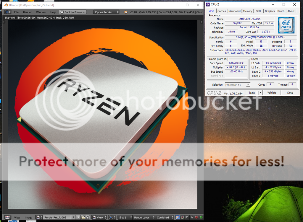 Con 6700k a 4800mhz ram a 3466 ho fatto 41 secondi e spicci P.s. a cinebench fá quasi 1100 punti a 4800 con ram 3466 |