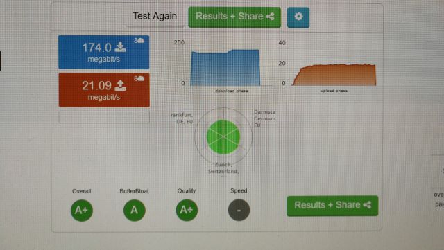Ha chiesto di spengere il modem, ha fatto qualcosa ed abbiamo ripetuto i test, speedtest segna 48Mb, eolo 12Mbs, Misurainternet 24Mbs... Tempo addietro ho provato anche con il Fritz3490 che non avendo il 35b agganciava a 97Mbs e navigava a 15/17Mbs, ora il Fritz è in cascata al TimHub perchè 100 volte meglio nel wifi. Ho chiesto che un tecnico venisse a casa con il suo portatile e lo attaccasse al TimHub per fare tutte le prove di questo mondo tanto il risultato sarebbe lo stesso....portante a 185Mbs e banda utile a 10Mbs. |