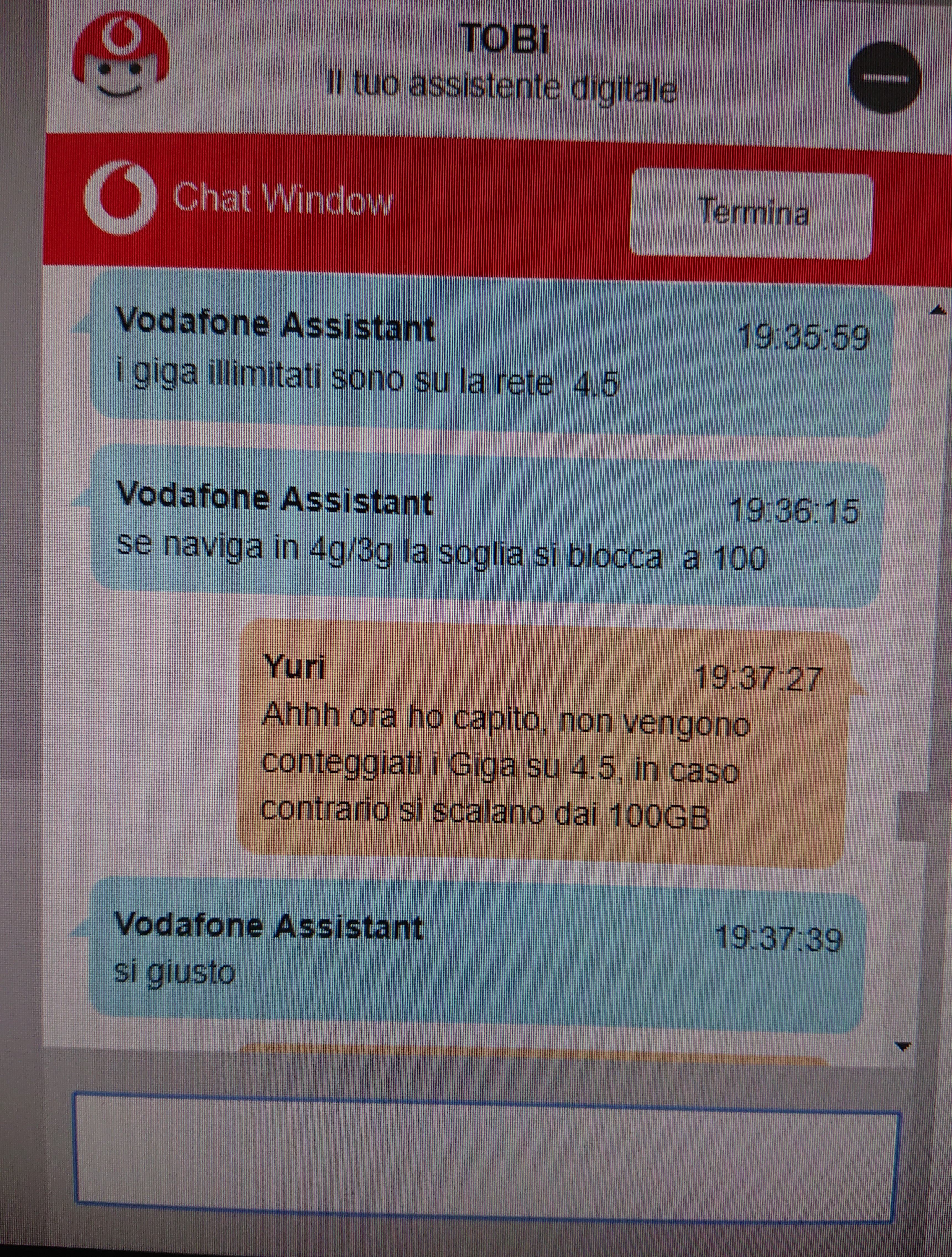 Che abilitano solo sui propri terminali ! Vodafone Assistant: che telefono usi ? io: Ho un router 4g Huawei b525, dato che non ho linea fissa Vodafone Assistant: no, non e' abilitato al 4.5 |