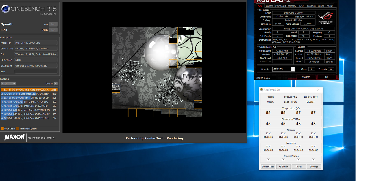 Mb:Asus maximus xi extreme;Cpu:I9 9900k;Dissi:Nztx Kraken Z73;Ram:Gskill trident z 3600Mhz rgb 32gb;M.2 Samsung 970evo 250Gb;Gpu:Gtx Geforce 1080 x;Psu:Corsair rm850i |