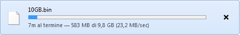 Ecco la saturazione di Infostrada su alcuni nodi. PING 24 | download 16 | upload 18 https://speed.hetzner.de/10GB.bin -> 174 kB/s - 4,0 MB di 9,8 GB, 16 ore rimanenti http://download.xs4all.nl/test/10GB.bin --> 7,2 MB/s - 137 MB di 9,3 GB, 22 min rimanenti