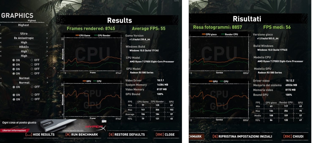 Ryzen 7 2700X Asus rog crosshair vii hero (wi fi) 16 GB DDR4 2400MHz Sapphire RX580 8 GB Nitro + ![]() https://goo.gl/oc6kKh Quelli su due Rx 580 mancano completamente " Bound Gpu" sembrano eseguiti in Directx 11 , dove appunto manca il supporto completo della Cpu alla Gpu.