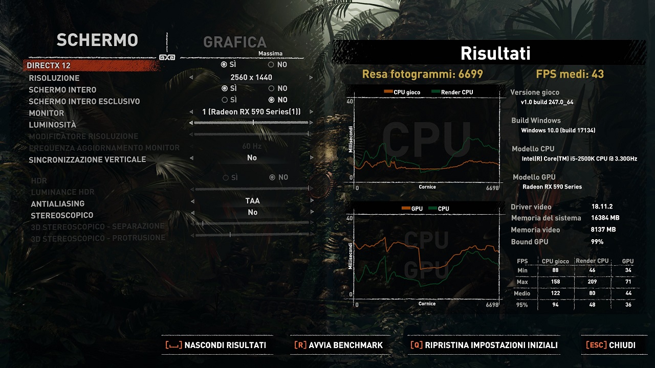 Ecco il benchmark fatto a 1440p, TAA, Preset Massimo:
