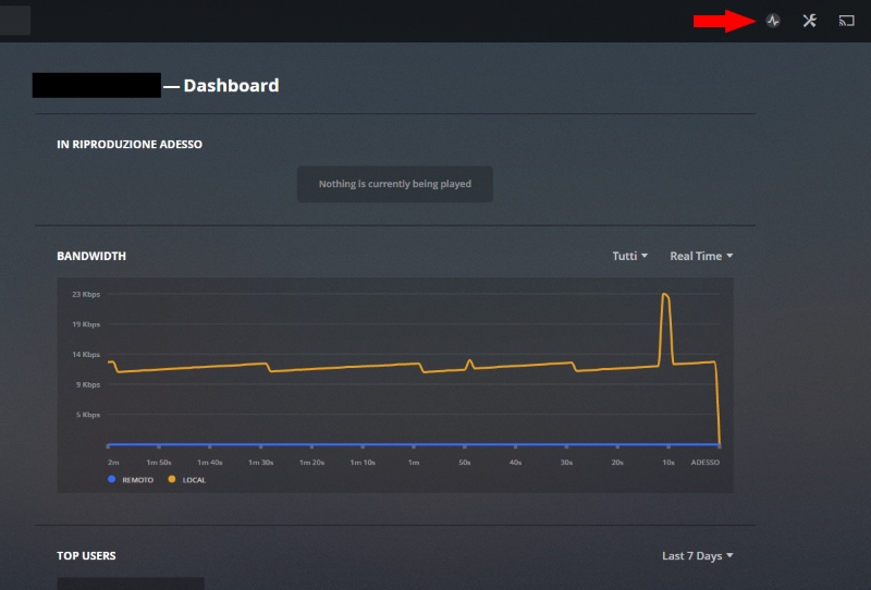 Puoi capire cosa succede (riproduzione diretta, transcodifica, etc.) dal client plex sulla TV o dalla dashboard del server. Dall'app sulla TV dev'essere attivata l'opzione "mostra informazioni sulla riproduzione" (o qualcosa di simile, di default è disattivata). Le info vengono mostrate a schermo, in alto a sinistra, quando richiami il menù play/pausa/ff/rw. Dal server ancora meglio, con la nuova Dashboard oltre alle info su riproduzione diretta, transcodifica etc. viene mostrata in tempo reale la banda richiesta per la riproduzione, basta cliccare sull'icona: