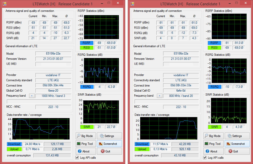 si può migliorare il livello del segnale ricevuto dai router 4G semplicemente incollando un foglio di carta stagnola su un supporto di cartone da usare come schermo riflettente posto alle spalle dell'apparecchiatura (In pratica dalla parte opposta della fonte di segnale). Si può curvare, allontanare e spostare in varie posizioni così da verificare il miglioramento. Attenzione però, più segnale non significa sempre più qualità. I vari test online di download non tengono conto dei pacchetti persi, quindi bisogna verificare sempre che il rapporto segnale/disturbo non peggiori come nel test sopra citato. In Banda 20 è decisamente peggiore che in Banda 3 e questo rende meno fluida la comunicazione dati. |