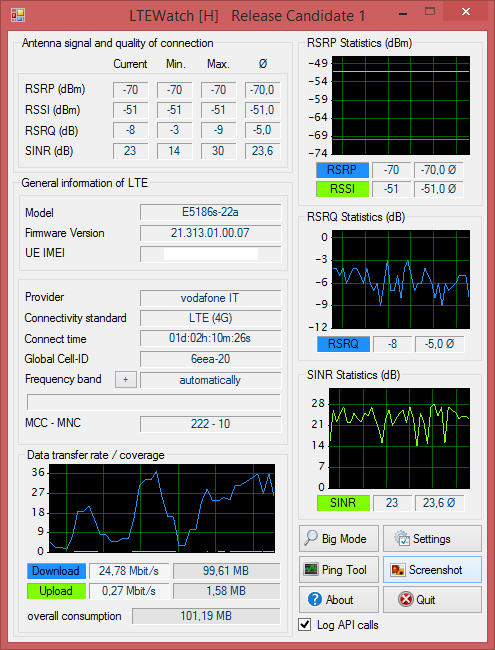 Guarda sono il primo ad essere sorpreso del risultato. Ovviamente se metto il modem e l'antenna di fronte alla finestra di camera mia, quasi in linea d'aria, si arriva addirittura a 80-90mbps... ma per me è una posizione scomoda e come ho detto una volta che arrivi a 40-50mbps , che te ne fai di più? Con LTE ho questi valori: ![]() Dalla finestra di cui sopra, arrivo a RSRP fino a -78/-80 ma stranamente il SINR è più o meno lo stesso.