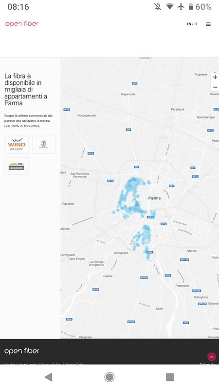 ![]() Trovo a dir poco strano che per tutte le strade (nelle zone blu) facendo la verifica sul portale OF risulti sempre e solo: << Resta in contatto ................ Al momento il tuo indirizzo non è ancora stato cablato da Open Fiber. Se vuoi essere informato non appena il servizio sarà disponibile, compila il form lasciando i tuoi dati e la tua email e sarai ricontattato >>. |