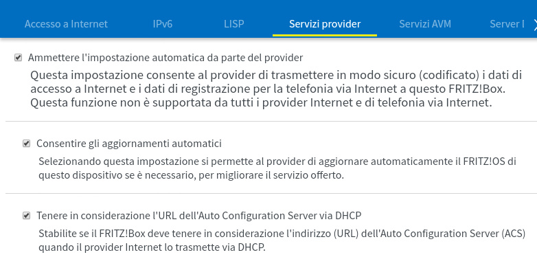 Solo con Wind Infostrada viene visualizzata quella pagina, con Tim e altri provider è nascosta.