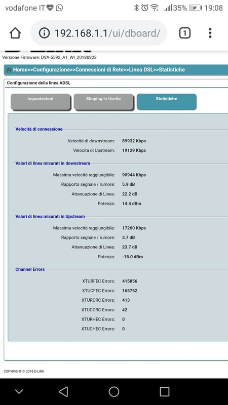No non le calcola come i modem TIM, però si può vedere l'attenuazione in banda D1 (più tutte le altre ) tramite il comando telnet adslctl info --pbparams