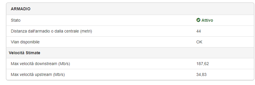 E' una 200 mega. distanza dalla centrale 900 metri. Distanza dal cabinet 60 metri. Grazie find gas near me