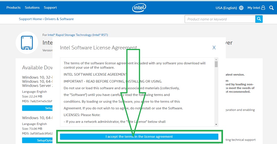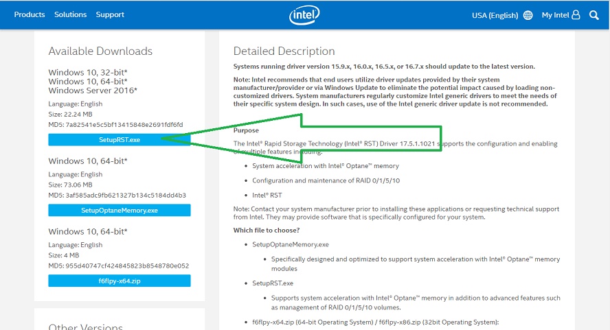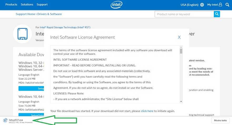 Il file da scaricare è SetupRST.exe |