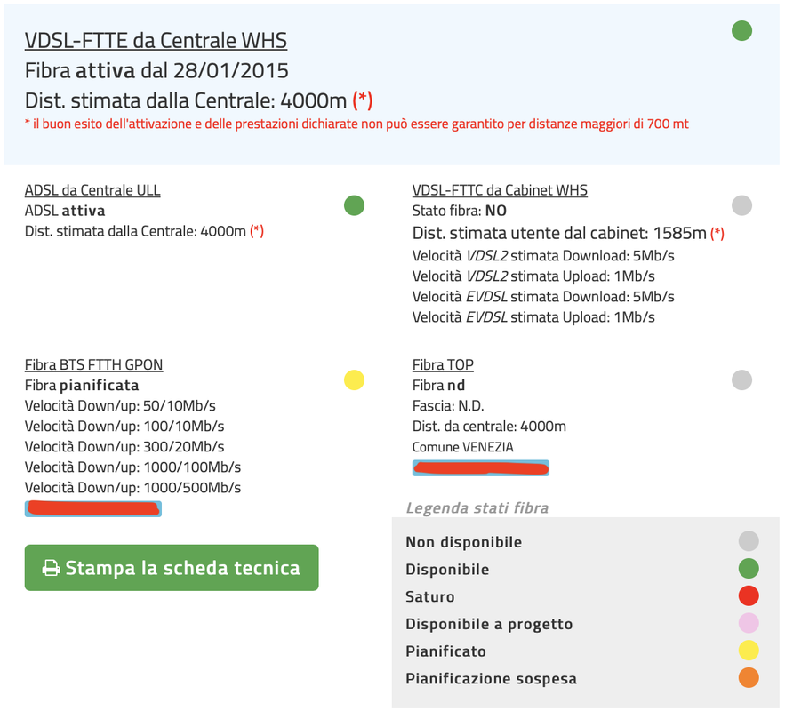 per il momento lo stato è questo: ![]() già arrivare a questo stato è stata una impresa. speriamo finalizzino. su planetel riportano un fantomatico profilo fibra 1000/500. chissà chi lo vende. ![]() per altro vedo che tim aveva fatto un bello scherzo ai tempi della fttc: dato che non hanno voluto coprire l'armadio a cui son collegato, avevano dichiarato coperto il civico in ftte, che non avrebbe funzionato dato che la centrale è a 4km. strane cose. vabbeh, speriamo diventi presto vendibile al mio civico la ftth così risolvo la questione.