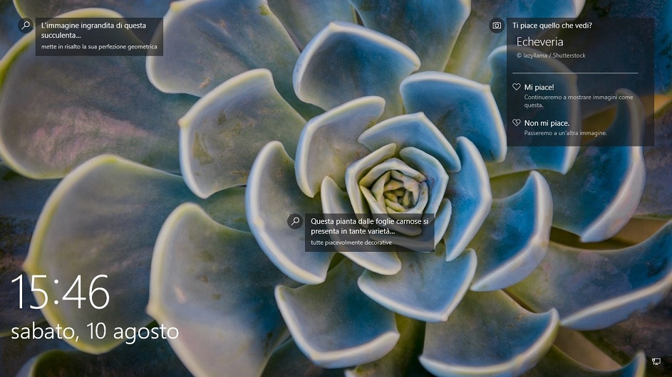 Windows 10 SpotLight Images On Screen Worldwide Tutte le immagini di questo post, sono state già pubblicate in Windows 10 SpotLight Images Oggi iniziamo con un' immagine davvero sorprendente, spaventosamente meravigliosa................. ![]() Lisbona, Portogallo - Belém Tower (Torre de Belém) at the Tagus river in Lisbon at sunrise, Portugal C' è da dire, però....che qualche volta, nelle immagini che appaiono quando si accende il computer, la Descrizione in alto a destra, è un pò........superficiale . Come nell' immagine appena postata sopra............. Bella nulla da dire, anzi, ma..........la Descrizione in alto a destra Lisbona, Portogallo......cosa vuol dire......? Che siamo a Lisbona, capitale del Portogallo, ok e poi ? L' immagine cosa rappresenta ? Un castello, una fortificazione o fortezza, un baluardo difensivo o................? Con la Descrizione in Inglese di Windows 10 SpotLight Images, si ha un' idea migliore, di cosa rappresenti l' immagine Quindi ok, le tre descrizioni che appaio On Screen + la Descrizione di Windows 10 SpotLight Images, per avere un' idea migliore su cosa rappresenti l' immagine che stiamo guardando . Poi torneremo su queste descrizioni leggermente superficiali, con l' ultima immagine di questo post . Un' occhiata dall' alto a un panorama non da poco, in Svezia ![]() Reine, Norvegia - Sunset aerial view from Reinebringen ridge on mountains and village of Reine in Lofoten islands, Norway Una spiaggia particolare in Oregon USA ![]() Ecola State Park, Oregon - Crescent Beach in Ecola State Park, Oregon, USA La Descrizione in alto a Destra nelle immagini On Screen Tornando alle Descrizioni che appaio in alto a destra e che certe volte sono un pò stringate, come a dire....leggermente superficiali, cosa dite di questa Descrizione ? Cosa si capisce da questa immagine ? Che siamo a Echeveria .....o che magari Echeveria è .......? A me inizialmente pareva una scultura a dir la verità, o in ceramica o.......invece è una pianta . Infatti è una pianta, ripresa cosi da vicino che mette in risalto la sua perfezione geometrica, come dice la prima descrizione in alto a sinistra....... A parte che come pianta a me non piace, ma dove ci troviamo ? In USA, In India, in Canada, in Cina, in Giappone, in Africa, in Russia, in UK o................? Siamo in Italy La descrizione in Windows 10 SpotLight Images, dell' ultima immagine postata, dell' immagine dove in alto a destra, è scritto Echeveria, è > Rosette pattern of succulent plant Echeveria Capri, Capri island, Italy L' immagine è stata postata in Windows 10 SpotLight Images il 14-May-2018 Non ci credete ? Questo è il link