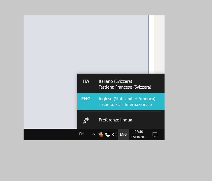 Il problema è che non riesco a fare stare a vista la scritta ita la sotto. PS uso lingua italiana con tastiera americano internazionale modificato da me (in pratica posso mettere le virgolette con un tasto solo invece che passare dall'accento) Uso questa combo da anni ormai , solo che dopo formattato ha deciso di non mostrarmi più la lingua Anche aprendo la barra delle lingue al riavvio me la fa sparire.