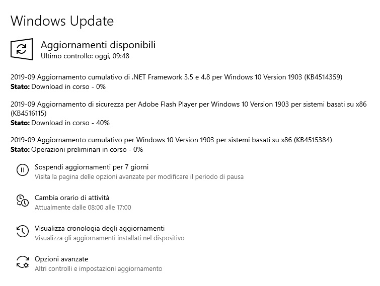 September 10, 2019—KB4515384 (OS Build 18362.356) A me sta scaricando questo, non c'è nulla di Luglio 2019.........>
