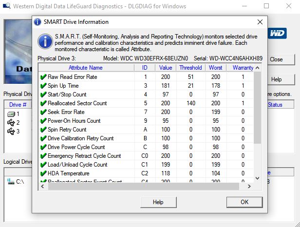 per vostra esperienza potrebbe essere che il disco sia buono lato settori danneggiati ma che magari abbia problemi lato elettronico? ripeto.. se è da cambiare lo cambio non vorrei spendere solo altri 100€ (sommati agli altri 100€ del primo) e poi non avere risolto il problema ![]() la parte smart (che non mi hanno chiesto ma che gli ho mandato di mia iniziativa) è così: ![]() quei valori non sono facili da leggere ma nell'help c'è questo: "Each monitored characteristic (Attribute) is used to calculate an Attribute Value. Attribute Values range from 1 to 253 with 1 being worst case, 253 being best case, and 100 being nominal. For WD drives, the normalized attribute value will range from 1 to 100 or 1 to 200, depending on the attribute. Error rate, total spin ups, spin up retries and calibration retries attributes are implemented as during normal operation (“on-line”); whereas, Multi-zone Error Rate test is performed “off-line”. This test performs a read-verify-all operation and calculates an error rate. These Attributes are updated and stored in the drive's reserved area. Also stored on the drive is a set of Attribute Thresholds that correspond to the calculated Attribute Values. An impending degrading or faulty condition is indicated when the calculated Attribute Value becomes less than or equal to its corresponding Attribute Threshold value. " quindi da quello che capisco i valori sono tutti nella norma |