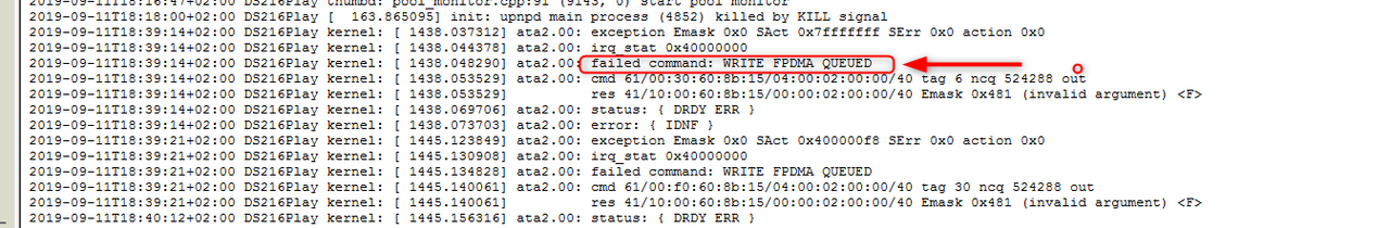 ho trovato finalmente il log dei dischi: Unità Livello,Data e ora,Modello,Numero di serie,Periferica,Posizione,Evento, Error,2019/09/11 18:40:17,WD30EFRX-68EUZN0,WD-WCC4N6AHXH89,DS216play,Drive 2,Cercare di re-identificare l'unità. Error,2019/09/11 18:40:15,WD30EFRX-68EUZN0,WD-WCC4N6AHXH89,DS216play,Drive 2,Cercare di re-identificare l'unità. Error,2019/09/10 18:35:17,WD30EFRX-68EUZN0,WD-WCC4N6AHXH89,DS216play,Drive 2,Cercare di re-identificare l'unità. Error,2019/09/10 18:35:15,WD30EFRX-68EUZN0,WD-WCC4N6AHXH89,DS216play,Drive 2,Cercare di re-identificare l'unità. Error,2019/09/10 18:35:15,WD30EFRX-68EUZN0,WD-WCC4N6AHXH89,DS216play,Drive 2,Tentativo di riconnessione all'unità. Error,2019/09/08 12:10:23,WD30EFRX-68EUZN0,WD-WCC4N4FCNZRJ,DS216play,Drive 1,Cercare di re-identificare l'unità. Error,2019/09/08 12:10:20,WD30EFRX-68EUZN0,WD-WCC4N4FCNZRJ,DS216play,Drive 1,Cercare di re-identificare l'unità. Error,2019/09/08 12:10:20,WD30EFRX-68EUZN0,WD-WCC4N4FCNZRJ,DS216play,Drive 1,Tentativo di riconnessione all'unità. Error,2019/09/08 12:10:19,WD30EFRX-68EUZN0,WD-WCC4N4FCNZRJ,DS216play,Drive 1,Cercare di re-identificare l'unità. Error,2019/09/08 12:10:19,WD30EFRX-68EUZN0,WD-WCC4N4FCNZRJ,DS216play,Drive 1,Cercare di re-identificare l'unità. Error,2019/09/08 12:10:19,WD30EFRX-68EUZN0,WD-WCC4N4FCNZRJ,DS216play,Drive 1,Si è verificato un errore I/O all'unità. Error,2019/09/08 12:10:18,WD30EFRX-68EUZN0,WD-WCC4N4FCNZRJ,DS216play,Drive 1,Cercare di re-identificare l'unità. Error,2019/09/08 12:10:17,WD30EFRX-68EUZN0,WD-WCC4N4FCNZRJ,DS216play,Drive 1,Cercare di re-identificare l'unità. Error,2019/09/08 12:10:16,WD30EFRX-68EUZN0,WD-WCC4N4FCNZRJ,DS216play,Drive 1,Cercare di re-identificare l'unità. Error,2019/09/08 12:10:15,WD30EFRX-68EUZN0,WD-WCC4N4FCNZRJ,DS216play,Drive 1,Errori I/O. Error,2019/09/07 18:22:03,WD30EFRX-68EUZN0,WD-WCC4N4FCNZRJ,DS216play,Drive 1,Tentativo di riconnessione all'unità. Error,2019/09/05 18:49:03,WD30EFRX-68EUZN0,WD-WCC4N4FCNZRJ,DS216play,Drive 1,Cercare di re-identificare l'unità. Error,2019/09/05 18:49:02,WD30EFRX-68EUZN0,WD-WCC4N4FCNZRJ,DS216play,Drive 1,Cercare di re-identificare l'unità. Error,2019/09/05 18:49:02,WD30EFRX-68EUZN0,WD-WCC4N4FCNZRJ,DS216play,Drive 1,Tentativo di riconnessione all'unità. Error,2019/09/05 18:49:01,WD30EFRX-68EUZN0,WD-WCC4N4FCNZRJ,DS216play,Drive 1,Cercare di re-identificare l'unità. Error,2019/09/05 18:49:01,WD30EFRX-68EUZN0,WD-WCC4N4FCNZRJ,DS216play,Drive 1,Cercare di re-identificare l'unità. Error,2019/09/05 18:46:19,WD30EFRX-68EUZN0,WD-WCC4N6AHXH89,DS216play,Drive 2,Cercare di re-identificare l'unità. Error,2019/09/02 18:34:28,WD30EFRX-68EUZN0,WD-WCC4N4FCNZRJ,DS216play,Drive 1,Cercare di re-identificare l'unità. Error,2019/09/02 18:33:18,WD30EFRX-68EUZN0,WD-WCC4N4FCNZRJ,DS216play,Drive 1,Cercare di re-identificare l'unità. Error,2019/09/02 18:33:14,WD30EFRX-68EUZN0,WD-WCC4N4FCNZRJ,DS216play,Drive 1,Cercare di re-identificare l'unità. Error,2019/09/02 18:33:14,WD30EFRX-68EUZN0,WD-WCC4N4FCNZRJ,DS216play,Drive 1,Tentativo di riconnessione all'unità. Error,2019/08/29 20:09:10,WD30EFRX-68EUZN0,WD-WCC4N4FCNZRJ,DS216play,Drive 1,Cercare di re-identificare l'unità. Error,2019/08/29 20:09:09,WD30EFRX-68EUZN0,WD-WCC4N4FCNZRJ,DS216play,Drive 1,Cercare di re-identificare l'unità. Error,2019/08/29 20:09:09,WD30EFRX-68EUZN0,WD-WCC4N4FCNZRJ,DS216play,Drive 1,Tentativo di riconnessione all'unità. Error,2019/08/29 20:09:08,WD30EFRX-68EUZN0,WD-WCC4N4FCNZRJ,DS216play,Drive 1,Cercare di re-identificare l'unità. Error,2019/08/29 20:09:08,WD30EFRX-68EUZN0,WD-WCC4N4FCNZRJ,DS216play,Drive 1,Cercare di re-identificare l'unità. Error,2019/08/29 20:09:07,WD30EFRX-68EUZN0,WD-WCC4N6AHXH89,DS216play,Drive 2,Cercare di re-identificare l'unità. Error,2019/08/29 20:09:06,WD30EFRX-68EUZN0,WD-WCC4N4FCNZRJ,DS216play,Drive 1,Cercare di re-identificare l'unità. Error,2019/08/29 20:09:06,WD30EFRX-68EUZN0,WD-WCC4N4FCNZRJ,DS216play,Drive 1,Cercare di re-identificare l'unità. Error,2019/04/07 21:33:48,WD30EFRX-68EUZN0,WD-WCC4N4FCNZRJ,DS216play,Drive 1,Si è verificato un errore I/O all'unità. Error,2019/04/07 21:33:47,WD30EFRX-68EUZN0,WD-WCC4N4FCNZRJ,DS216play,Drive 1,Errori I/O. Error,2019/04/07 21:33:47,WD30EFRX-68EUZN0,WD-WCC4N4FCNZRJ,DS216play,Drive 1,Errori I/O. Error,2019/03/07 20:42:27,WD30EFRX-68EUZN0 ,WD-WCC4N4FCNZRJ,DS216play,Drive 1,"Unità guasta. Per ulteriori dettagli, andare su Storage Manager > HDD/SSD > Info integrità." Error,2019/03/05 21:42:14,WD30EFRX-68EUZN0,WD-WCC4N4FCNZRJ,DS216play,Drive 1,Si è verificato un errore I/O all'unità. Error,2019/03/05 21:42:13,WD30EFRX-68EUZN0,WD-WCC4N4FCNZRJ,DS216play,Drive 1,Errori I/O. Error,2019/03/05 21:42:13,WD30EFRX-68EUZN0,WD-WCC4N4FCNZRJ,DS216play,Drive 1,Errori I/O. il disco1 l'ho sostituito lunedì sera 09/09/2019 come vedete prima di quel giorno non c'erano problemi sul disco2 se non due cose sporadiche il 29/08 e il 05/09 sono nella situazione che non so se è il nas ad avere problemi e se magari ho cambiato il disco1 inutilmente, e se vale la pena di cambiare anche il disco2 non vorrei trovarmi ad avere cambiato tutti e due i dischi e avere ancora questi problemi compro e sostituisco anche il secondo? voi che fareste? ho provato ad aprire un ticket in synology ma sicuramente rifiuteranno perchè la garanzia è scaduta da 6 mesi |